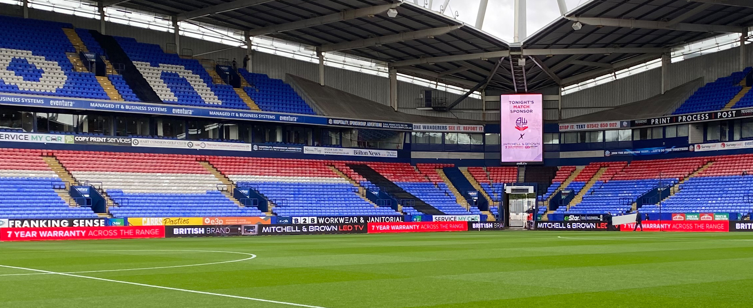 Mitchell & Brown Operations Director, Dan Brown, commented, “We are extremely proud to have been selected to supply and install BWFC’s new 4K digital TV screen and signage network. As long-standing supporters of the club, as well becoming the clubs first ever back-of-shirt sponsors in 2016/17 , this is a great example of local businesses working together to build a better experience for the end customer – in this case the hundreds of thousands of football fans, BWFC supporters and hospitality guests that pass through the Bolton Stadium every year. We are delighted to be a part of this new chapter in the club’s ongoing history.”