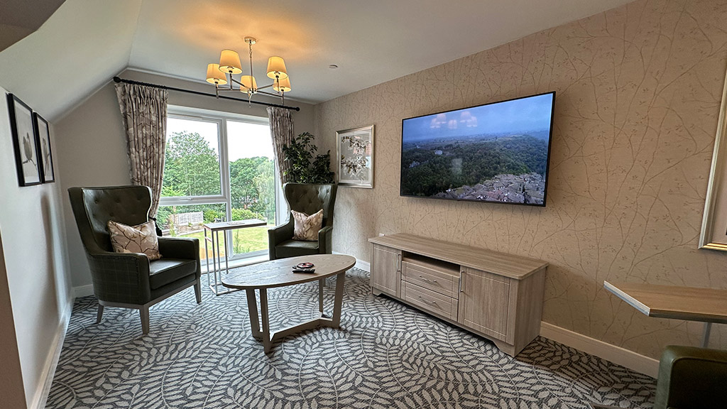 All LG screens were professionally mounted using Peerless AV wall brackets, ensuring secure, flush-fit installations that complement the aesthetics of each space at the care home while maximising visibility and comfort for guests enjoying the ongoing entertainment.
